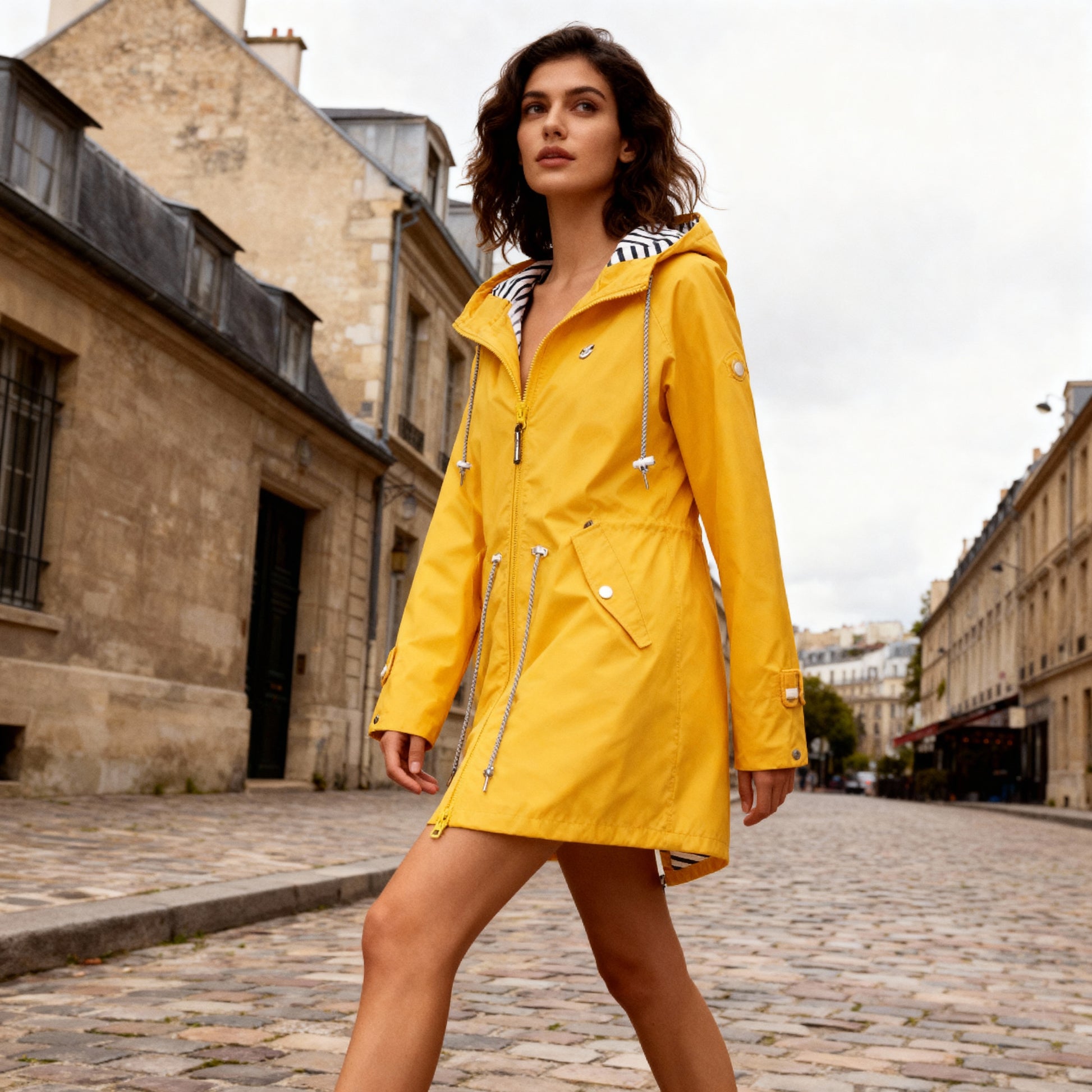 Meet the elements in style with this women’s hooded waterproof coat, designed for modern all-weather wear. This piece blends practical protection with a sleek silhouette, so you remain dry, comfortable and confident no matter the forecast.