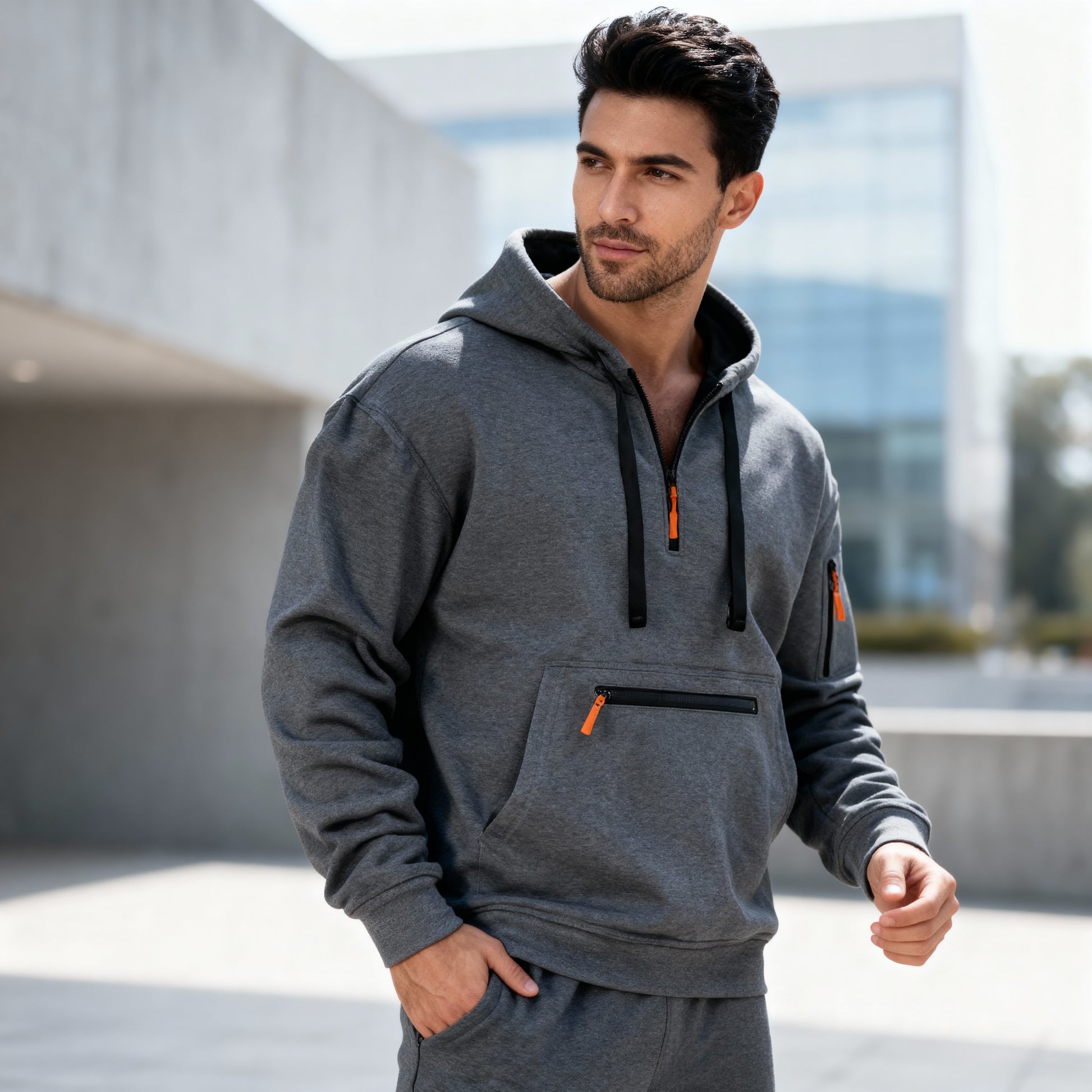 Logan Zip Hoodie – Men's Utility Pullover with Hood and Multi-Pocket Street Style