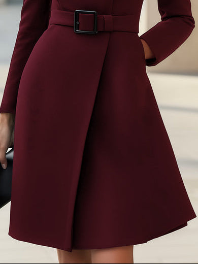 Mariste Women’s High-Neck A-Line Dress – Belted Modern Silhouette